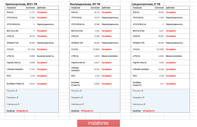 Анализируя разный сектор таймфреймов (ТФ), мы видим, что показатели индикаторов в краткосрочной, внутридневной и среднесрочной перспективе сохраняют нисходящий интерес на фоне инерционного хода.