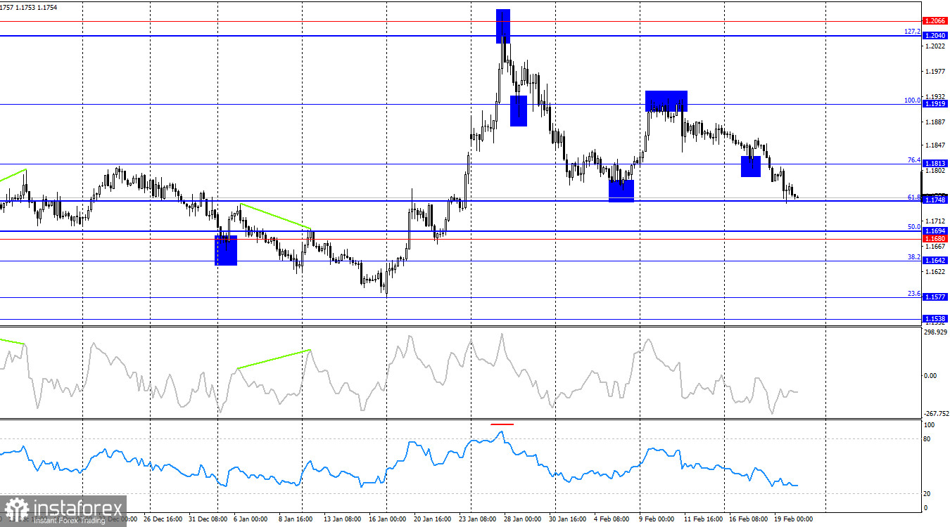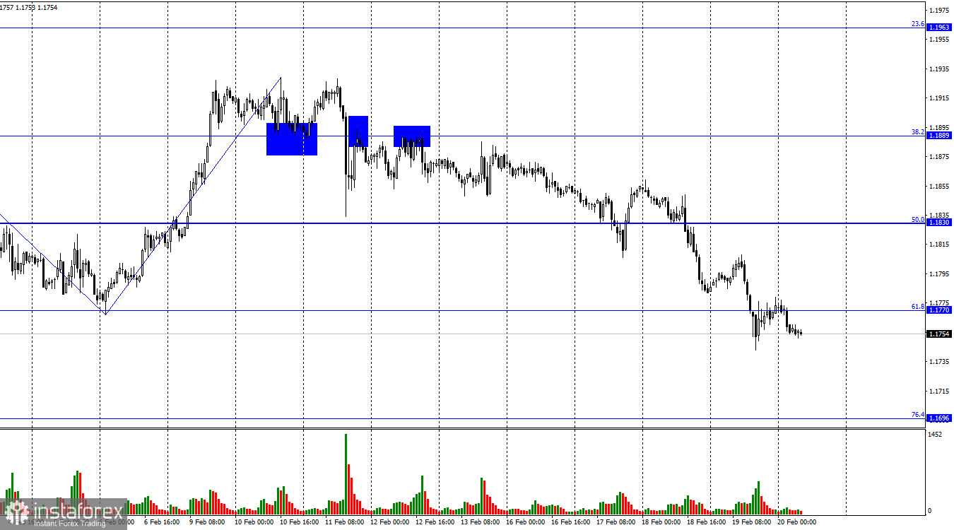 В четверг информационный фон был достаточно слабым, но единственный отчет по заявкам на первичные пособия по безработице оказался лучше прогнозов, что опять поддержало медведей. Я не уверен, что медведи не атаковали бы в четверг без этого отчета, так как рост доллара начался еще днем. Однако факт остается фактом. На мой взгляд, за текущим укреплением доллара стоит какой-то глобальный фактор. Напомню, что после слабых данных по рынку труда за 2025 год и сильных за январь, а также снижения инфляции в США до 2,4%, трейдеры ожидали смягчения настроя комитета FOMC. Однако этого не произошло. Совет директоров ФРС по-прежнему не уверен в замедлении инфляции к 2% и предпочитает еще несколько месяцев занимать выжидательную позицию в отношении ДКП. Возможно, этот фактор оказывает поддержку доллару, но все же доллар растет уже 10 дней. Слишком много для одного фактора, учитывая тот факт, что ЕЦБ тоже не собирается проводить смягчение, несмотря на замедление инфляции до 1,7%.
