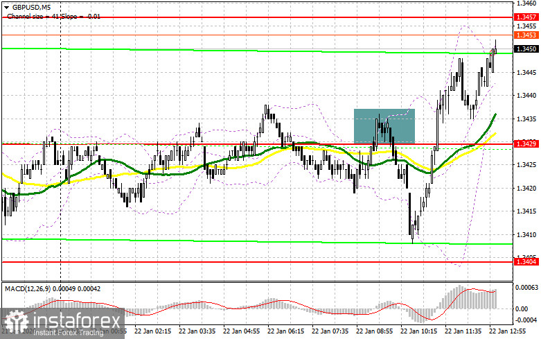 В своем утреннем прогнозе я обращал внимание на уровень 1.3429 и планировал от него принимать решения по входу в рынок. Давайте посмотрим на 5-минутный график и разберемся с тем, что там произошло. Рост и формирование ложного пробоя в районе 1.3429 привели к точке входа на продажу фунта, что вылилось в падение пары на 20 пунктов. На вторую половину дня техническая картина была пересмотрена.