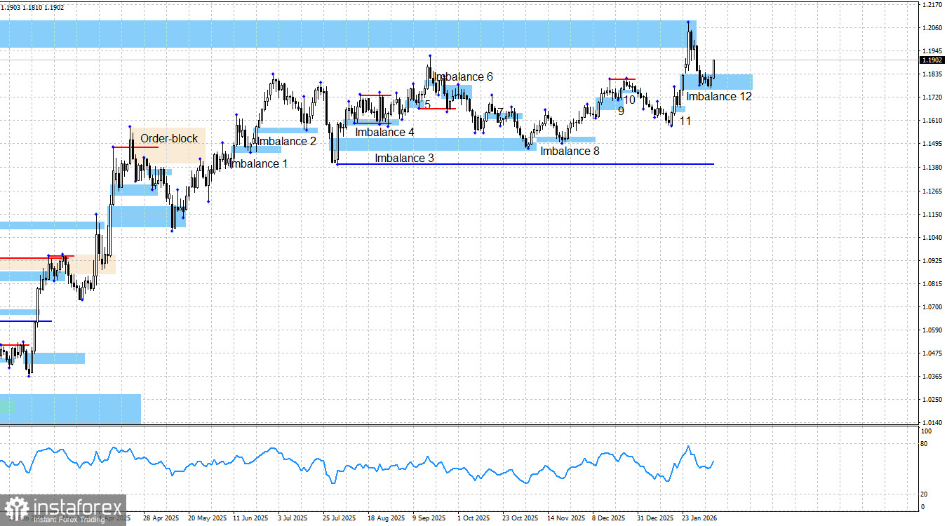 Причин у быков для нового наступления имеется в достатке уже месяцев 6-7, и с каждой неделей их становится только больше. Это и «голубиные» (в любом случае) перспективы ДКП FOMC, это и общая политика Дональда Трампа (которая не поменялась за последнее время), это и противостояние США с Китаем (где наступило лишь временное перемирие), это и акции протеста американского народа против Трампа под эгидой «No kings», это и слабость рынка труда, это и осенний «шатдаун» (который длился полтора месяца), это и новый «шатдаун», который пришелся на начало февраля. Также это военная агрессия США по отношению к некоторым государствам, уголовное преследование Пауэлла, «гренландская неразбериха», обострение отношений с Канадой и Южной Кореей. Таким образом, дальнейший рост пары, на мой взгляд, будет полностью закономерным.