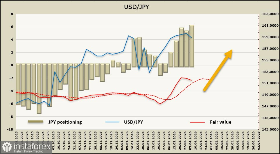 Чистая короткая позиция иене увеличилась за отчетную неделю на 0,57 млрд, до -5,74 млрд, спекулятивное позиционирование медвежье, расчетная цена остается выше долгосрочной средней, однако наблюдаются попытки разворота вниз.
