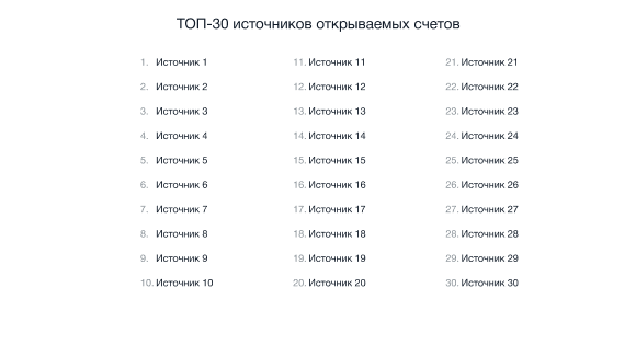 • Це список інтернет-ресурсів, розташованих за кількістю відкритих рахунків при переході з вказаного веб-сайту за вашим партнерським посиланням.