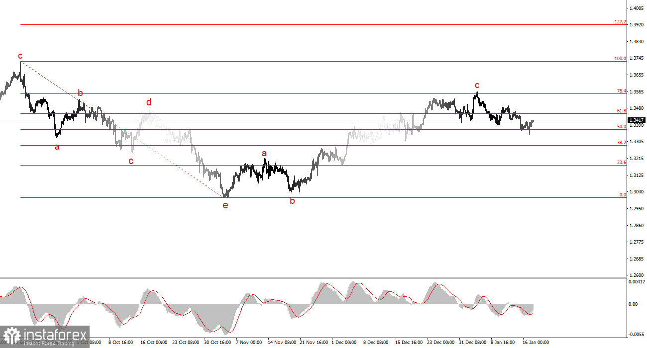В краткосрочном плане я ожидал построение волны 3 или с с целями, расположенными около отметок 1,3280 и 1,3360, что приравнивается к 76,4% и 61,8% по Фибоначчи. Эти цели достигнуты. Волна 3 или с предположительно завершила свое построение, поэтому в ближайшее время может наблюдаться построение понижательной волны или набора волн.