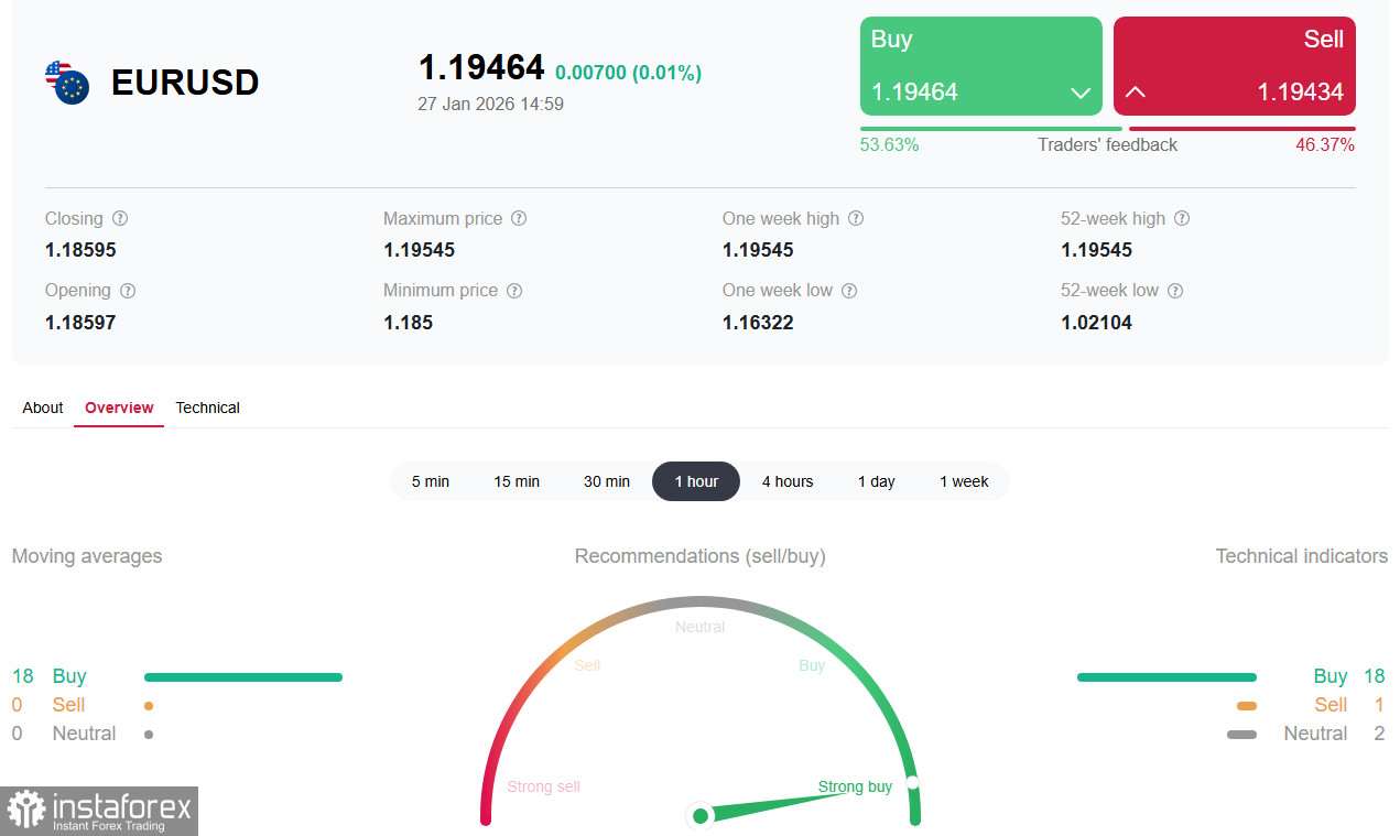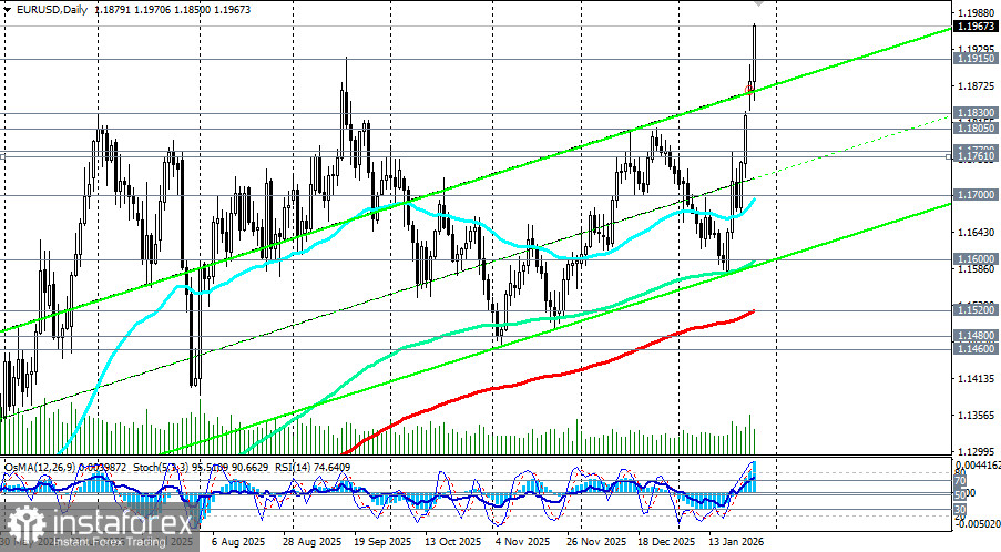 Между тем, пара EUR/USD уверенно сохраняет восходящий тренд и торгуется вблизи долгосрочных максимумов выше 1.1900 – 1.1915, обновляя уровни, не виденные с июля 2021 года. Евро укрепляется на фоне системной слабости доллара США, вызванной политическими рисками, торговыми разногласиями и ожиданиями смягчения монетарной политики Федеральной резервной системы, и рынок воспринимает текущую динамику как устойчиво бычью, при этом попытки коррекции пока остаются ограниченными.