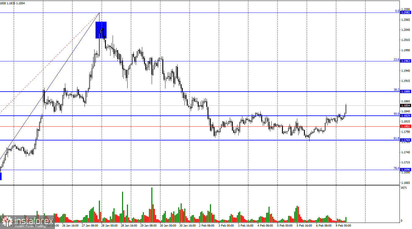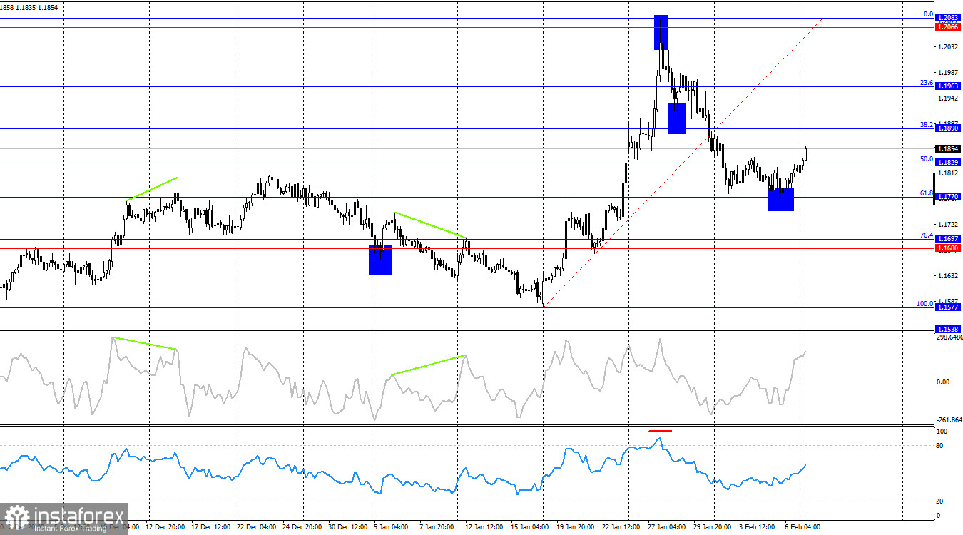 Сетки уровней Фибоначчи построены по 1,1805–1,1578 на часовом графике и по 1,1577–1,2083 на 4-часовом.