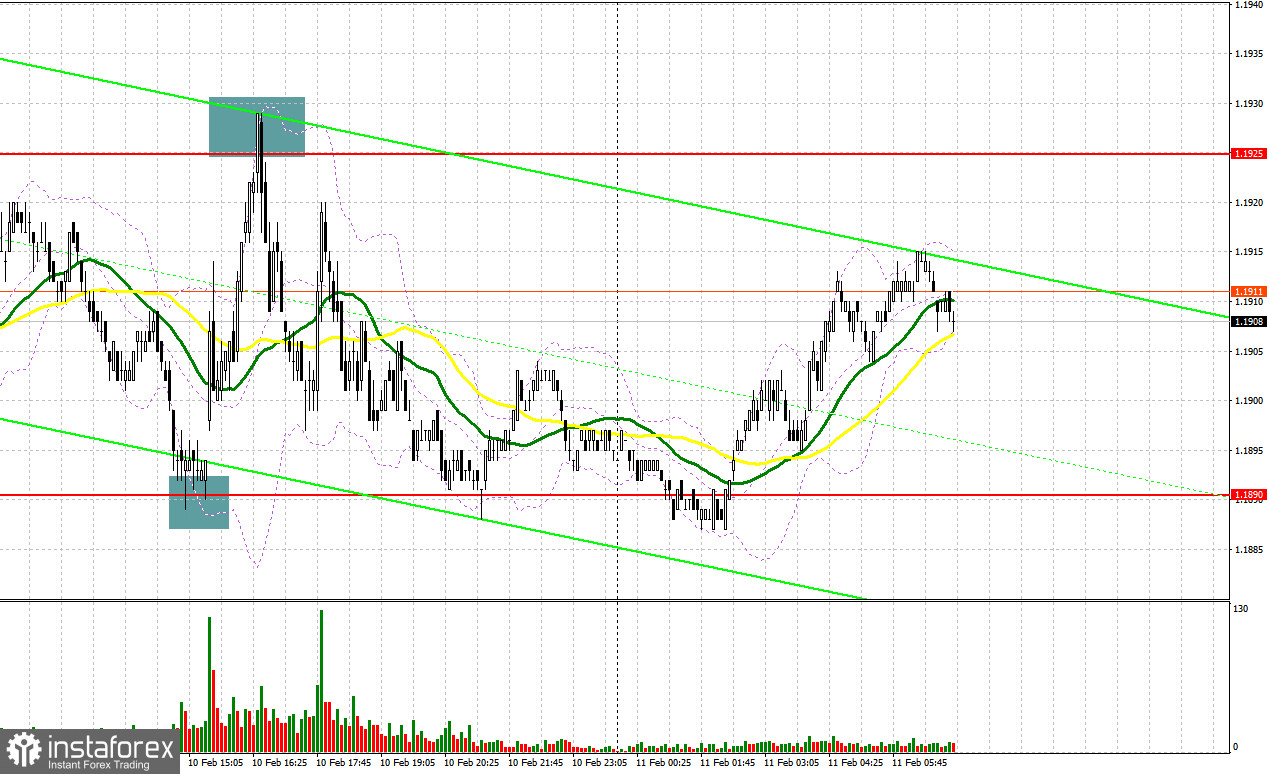 Вчера очень слабые данные по изменению объема розничной торговли в США в декабре прошлого года вызвали давление на американский доллар, а вот выступления представителей ФРС США не оказали никакого воздействия на валютный рынок, так как носили довольно сдержанный характер. Сегодня в первой половине дня из европейской статистики ожидается лишь отчет по изменению объема промышленного производства Италии, который вряд ли как-то повлияет на рыночные настроения. По этой причине ожидаю дальнейшую торговлю EUR/USD в рамках бокового канала. При небольшом снижении пары первого проявления быков ожидаю увидеть в районе 1.1890. Формирование там ложного пробоя по аналогии с тем, что я разбирал выше, даст точку входа в длинные позиции с целью восстановления пары к уровню 1.1925, выше которого выбраться пока никак не удается. Прорыв и обратный тест этого диапазона станут подтверждением правильных действий на покупку евро уже в расчете на более сильный рывок к сопротивлению 1.1957, где ожидаю активного проявления продавцов. Самой дальней целью выступит максимум 1.1995, где буду фиксировать прибыль. При варианте снижения EUR/USD, и отсутствия активности в районе 1.1890, евро может просесть более сильно. В таком случае продавцы попытаются дотянуться до следующего интересного уровня 1.1858. Лишь формирование там ложного пробоя будет подходящим условием на покупку евро. Открывать длинные позиции сразу на отскок будут от 1.1832 с целью восходящей коррекции в 30-35 пунктов внутри дня.