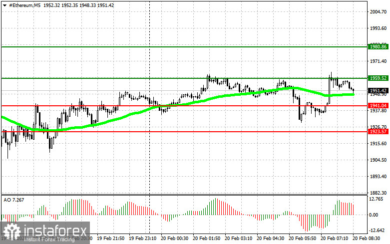 Сценарий №2: покупать эфир можно от нижней границы $1941 при отсутствии рыночной реакции на ее пробой в обратную сторону к уровням $1959 и $1980.