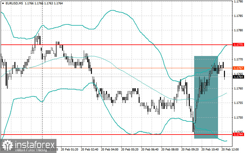 Покупки на прорыв уровня 1.1770 могут привести к росту евро в район 1.1790 и 1.1818;