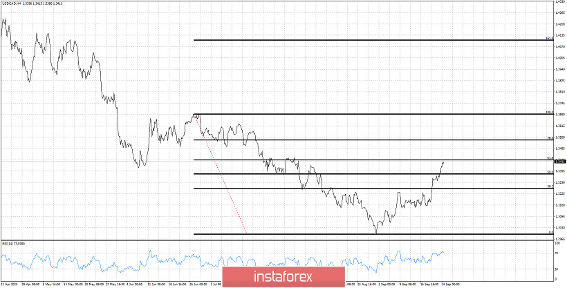 24.09.2020 07:23 PMEl USDCAD está operando por encima de 1.34. La tendencia a corto plazo sigue siendo alcista desde que la prueba de retroceso del canal rompió alrededor de 1.3160. Desde entonces, dimos un objetivo de rebote de 1.3350-1.34. El precio ahora ha alcanzado el nivel de retroceso de Fibonacci del 61.8%.