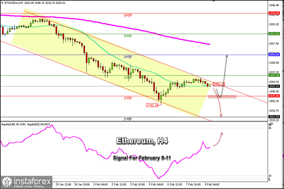 หากมีการเบรกทะลุช่องแนวโน้มขาลงขึ้นไปอย่างชัดเจน และสามารถยืนเหนือ 2,100 ดอลลาร์ได้อย่างมั่นคง อาจนำไปสู่การฟื้นตัวของคู่เงิน ETH/USD โดยมีเป้าหมายบริเวณระดับจิตวิทยาที่ 4/8 Murray แถว ๆ 2,500 ดอลลาร์
