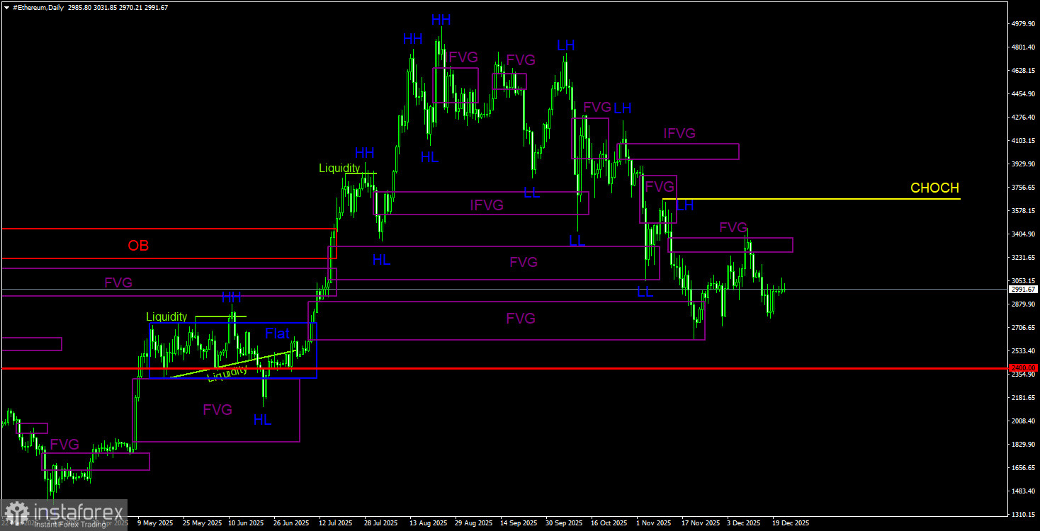 Торговые рекомендации по Эфиру(Ethereum) на 23 декабря по системе ICT.