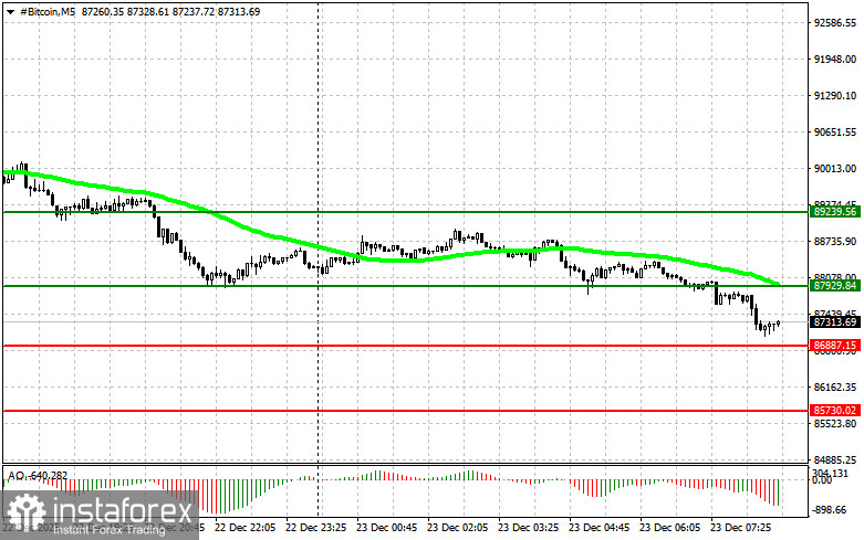 Сценарий №2: покупать биткоин можно от нижней границы $86 800 при отсутствии рыночной реакции на ее пробой в обратную сторону к уровням $87 900 и $89 300.