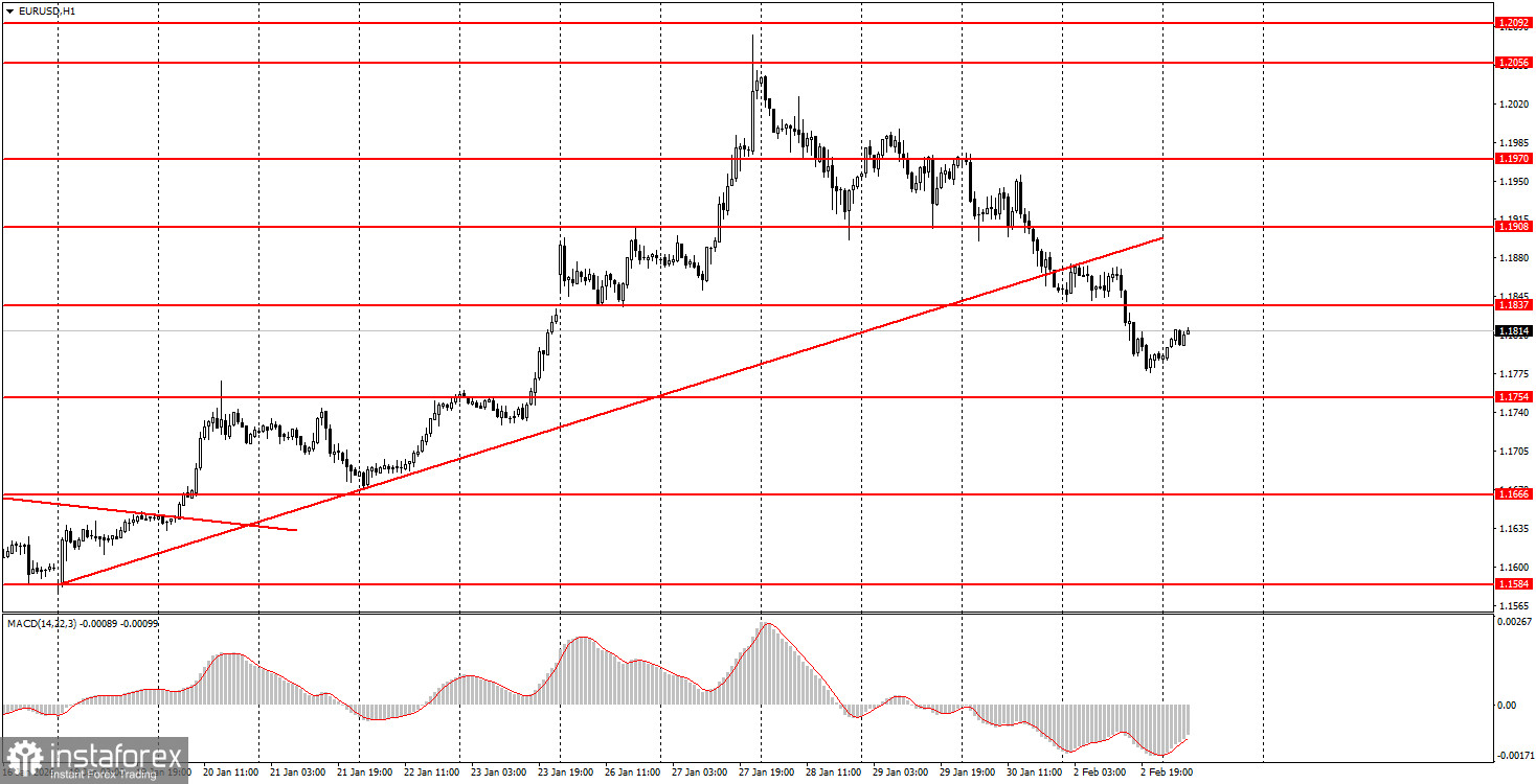 Из фундаментальных событий вторника можно отметить выступление представителя ФРС Томаса Баркина. Однако мы считаем, что это событие никакого влияния на валютный рынок не окажет. Заседание ФРС состоялось на прошлой неделе, а заседания ЕЦБ и Банка Англии пройдут в четверг. Всю необходимую и важную информацию трейдеры либо уже получили, либо получат чуть позже. На этой неделе будут опубликованы важные данные по рынку труда и безработице в США, и после их публикации можно будет ждать комментариев представителей ФРС. Рынок не сомневается в том, что в первой половине текущего года ФедРезерв вряд ли пойдет новое смягчение монетарной политики, но все будет зависеть от состояния рынка труда. Если Джером Пауэлл был прав в своих оценках, рынок труда восстанавливается, поэтому дополнительное смягчение не потребуется в ближайшее время. Также напомним, что в любой момент Трамп может отдать приказ о нанесении удара по Ирану, что вряд ли останется незамеченным трейдерами.