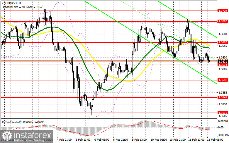 Фунт рухнул, а доллар резко вырос после новостей о том, что в прошлом месяце в США было создано 130 000 рабочих мест, а уровень безработицы снизился до 4,3%. Все это оказалось намного лучше прогнозов экономистов. Сегодня давление на пару может сохраниться. В первой половине дня ожидаются данные по изменению объема ВВП Великобритании за декабрь и четвертый квартал 2025 года, данные по изменению объема промышленного производства и балансу внешней торговли товарами. В случае слабой статистики первого проявления покупателей ожидаю увидеть лишь в районе поддержки 1.3614. Лишь формирование там ложного пробоя приведет к хорошей точке входа в длинные позиции с рывком к уровню 1.3662, выступающему серединой своеобразного бокового канала. Прорыв и обратный тест сверху вниз этого диапазона увеличат шансы на укрепление GBP/USD, что приведет к сносу стоп-приказов продавцов и подходящей точке входа в длинные позиции с возможностью выхода к 1.3707, где ожидаю уже более активного проявления медведей. Самой дальней целью будет область 1.3729, где собираюсь фиксировать прибыль. Тест этого уровня продолжит развитие бычьего рынка. При сценарии снижения GBP/USD и отсутствия активности со стороны покупателей на 1.3614, давление на пару возрастет довольно существенно, что приведет к движению в район следующей поддержки 1.3581. Лишь формирование там ложного пробоя будет подходящим условием на открытие длинных позиций далее по тренду. Покупать GBP/USD сразу на отскок собираюсь от минимума 1.3545 с целью коррекции в 30-35 пунктов внутри дня.