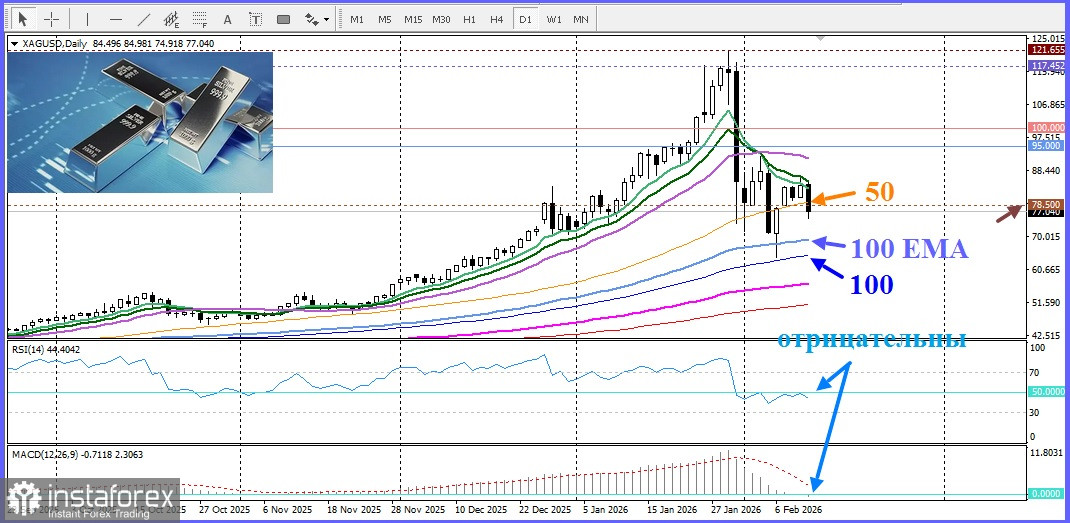 12.02.2026 19:31Сегодня в четверг серебро демонстрирует снижение, продолжая опускаться ниже 50-дневной SMA, теряя бычью конфигурацию.