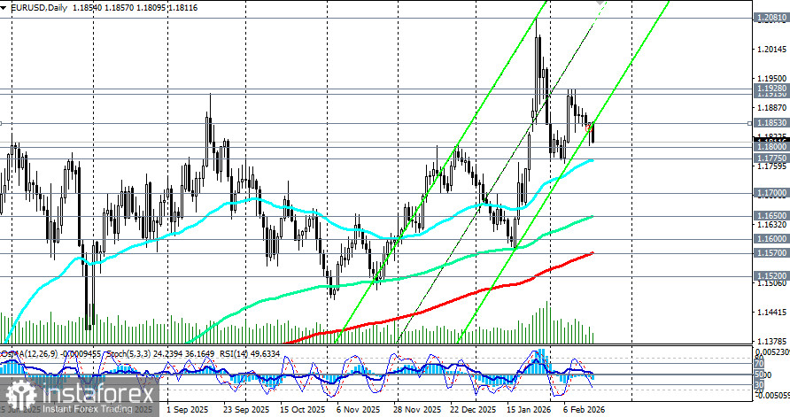 С технической точки зрения пара торгуется в зоне коррекции после предыдущего роста. Ближайшая поддержка расположена в области 1.1800–1.1775 (ЕМА50 на дневном графике), сопротивление — в районе 1.1853 (ЕМА200 на 1-часовом графике) – 1.1900. Закрепление выше 1.1900 может открыть путь к 1.2000 и выше, к недавнему многомесячному максимуму, достигнутому в январе вблизи отметки 1.2080. Пробой вниз усилит давление с целью к 1.1700–1.1650 (ЕМА144 на дневном графике). В краткосрочной перспективе рынок находится в фазе ожидания новых сигналов от ФРС.