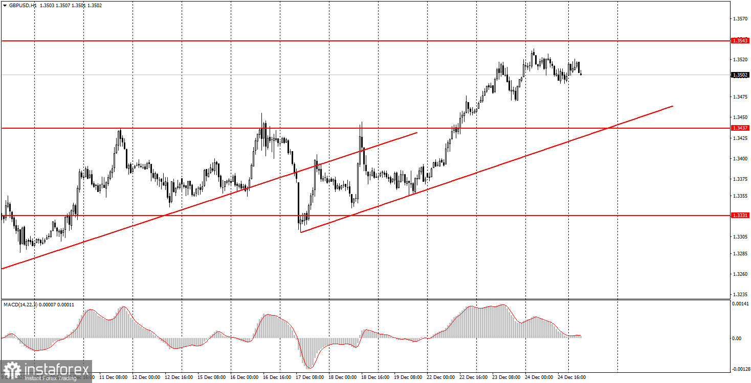 В течение последнего торгового дня праздничной недели обе валютные пары могут торговаться вяло. Краткосрочные тенденции по обеим валютным парам остаются восходящими, а рынок уже вовсю празднует. Фактор «тонкого» рынка может привести к трендовому движению сегодня, но этот момент спрогнозировать нельзя. Мы бы ожидали сегодня флэт.