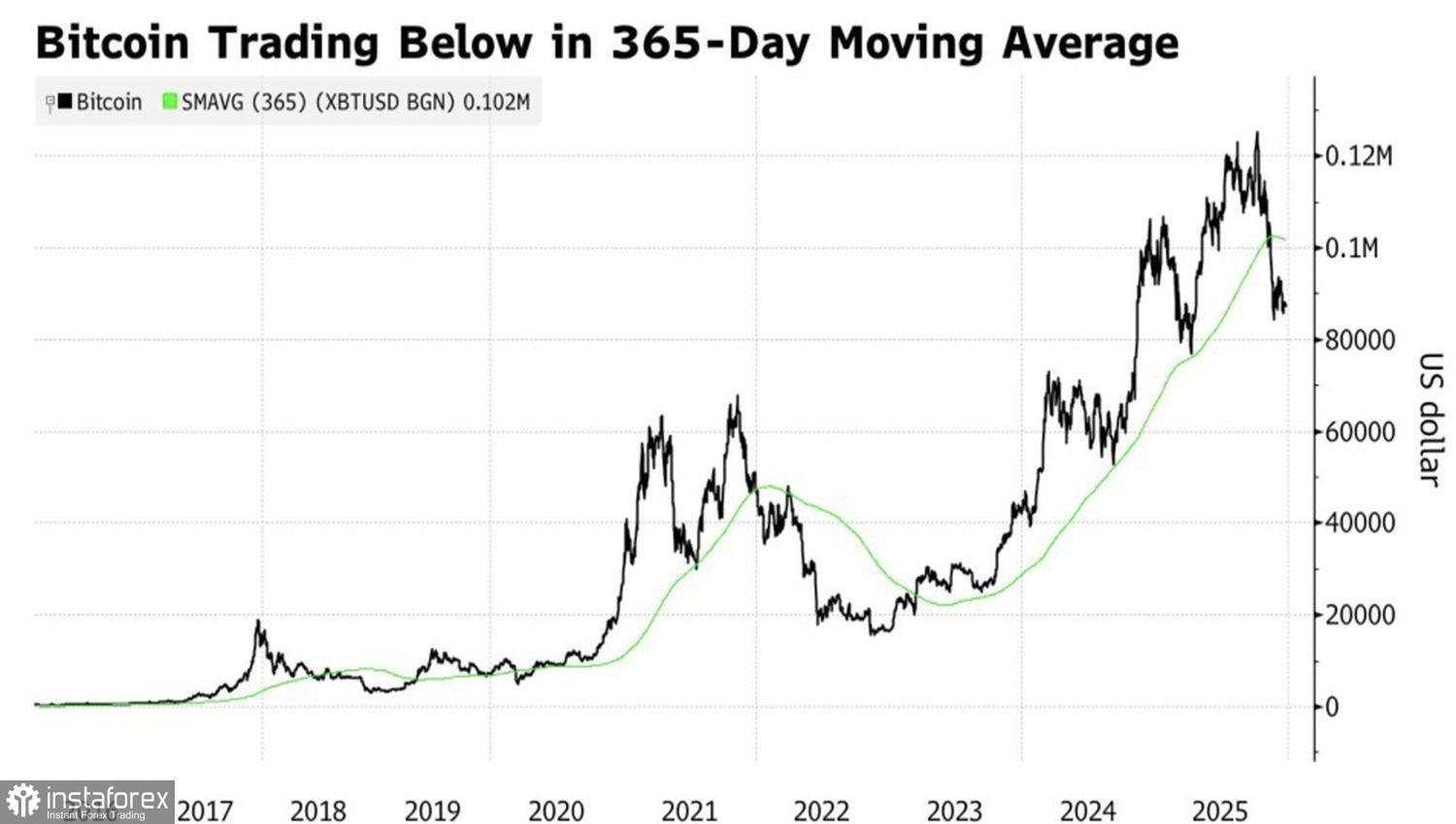 В результате перехода рынка криптовалют к профициту, пути BTC/USD с фондовыми индексами США разошлись. Ранее ассоциирующийся с цифровым золотом биткойн безнадежно проиграл традиционному золоту. Он перестал считаться как рискованным активом, так и активом-убежищем. Иначе говоря, ни рыба ни мясо. Неудивительно, что 2025 биткойн заканчивает в тупике.