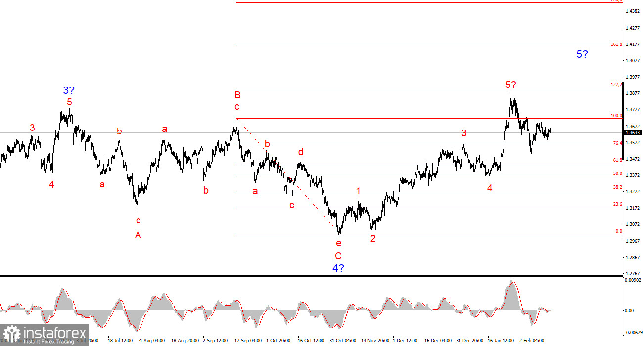 Волновая картина инструмента GBP/USD имеет вполне понятный вид. Пятиволновая повышательная структура завершила свое построение, но глобальная волна 5 может принять гораздо более протяженный вид. Я считаю, что в ближайшее время может наблюдаться построение коррекционного набора волн, после чего возобновиться построение восходящего тренда. Следовательно, в ближайшие недели я могу посоветовать искать возможности для новых покупок. На мой взгляд, при Дональде Трампе фунт стерлингов имеет все шансы подняться до 1,45-1,50$. Сам Трамп приветствует снижение доллара, а ФРС имеет возможность уже на следующем заседании вновь понизить ставку.